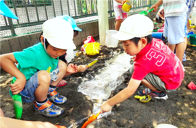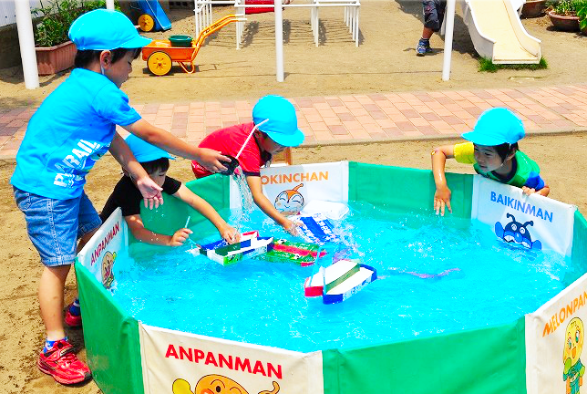 今日は朝からプール日和です。 暑い日差しの中、子どもたちは水 …