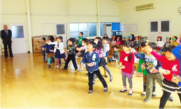 2月3日の節分に先立って 幼稚園で「豆まき」を行いました。 …