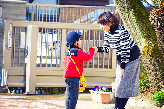 お部屋の前では先生が待っていて、握手で朝のご挨拶をします。
